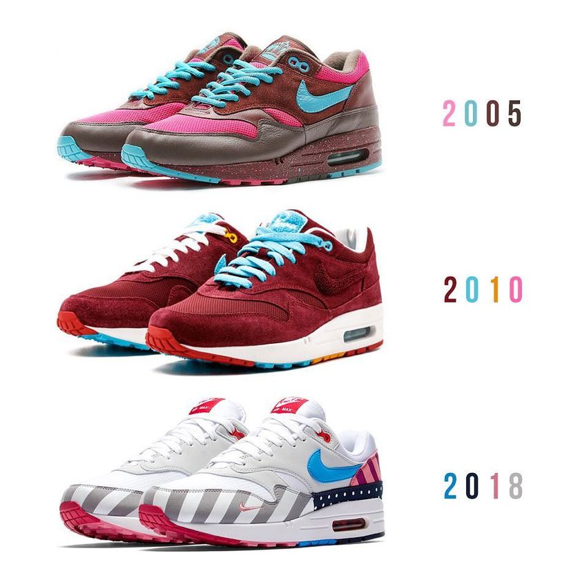 荷兰艺术家 Piet Parra 与 Nike 一向保持着良好的合作,在 Air Max 1 家族中,最受欢迎的几款配色正是出自他手。