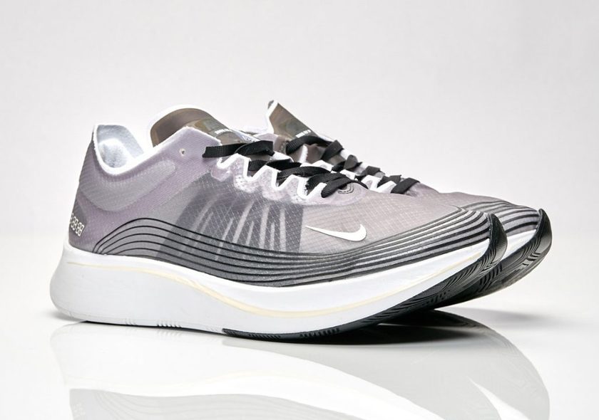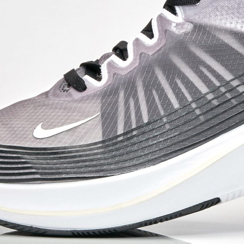 日前,Nike 又为人气跑鞋 Zoom Fly SP 带来了一双以黑紫色为主旋律的的全新配色。鞋款依旧由由半透明弹力编织材质构成,在黑色和紫色的映照下更显神秘质感。与此同时,鞋款在中底上的线条则以金色点缀,吸睛十足。
