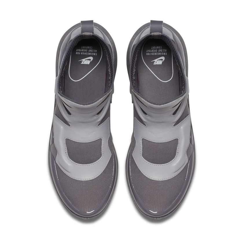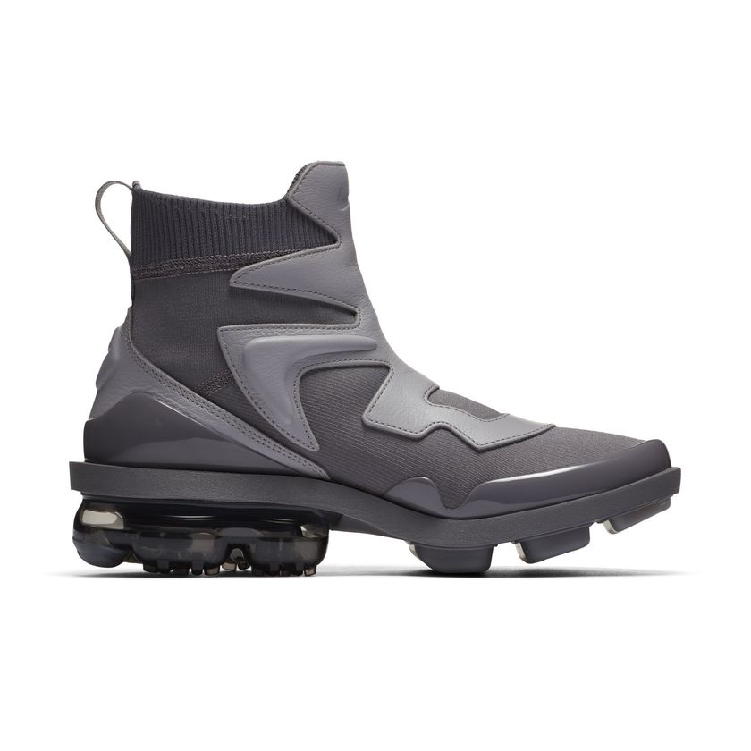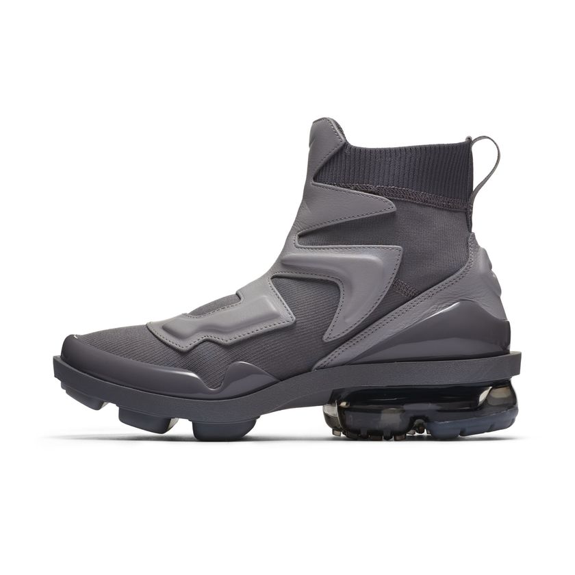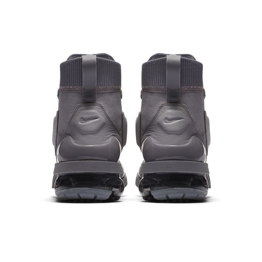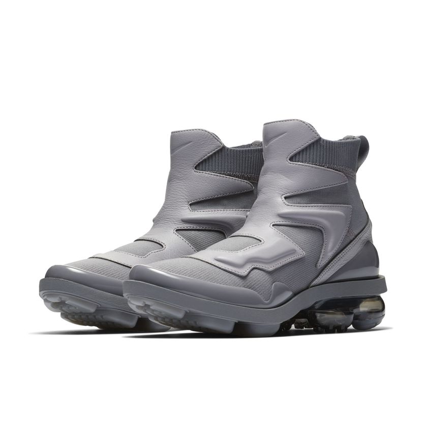 近日,网络上曝光一款全新的 Varpomax 鞋型以科技感浓厚的灰色靴子造型呈现,亮点则在于后半掌的 VaporMax 气垫。不仅这是半掌 VaporMax 的首次亮相,鞋底采用了较多的镂空设计,让这双鞋颇有 “高跟鞋” 的感觉。