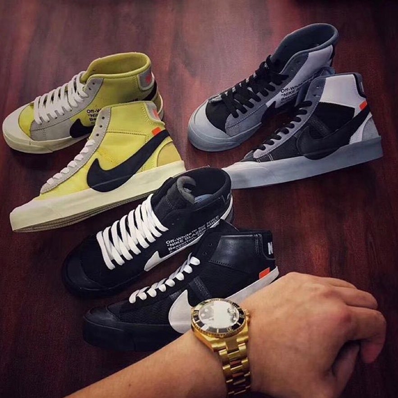 OFF-WHITE x Nike Blazer Studio Mid目前已经亮相三款配色,以 OFF-WHITE 标志性的解构风设计融入,鞋面则由格纹织物和多种皮革拼接而成。同时搭配超大白色 Swoosh Logo,造型醒目又浮夸,想必会有不俗人气。