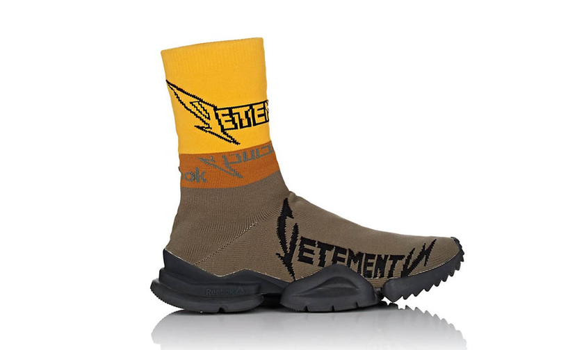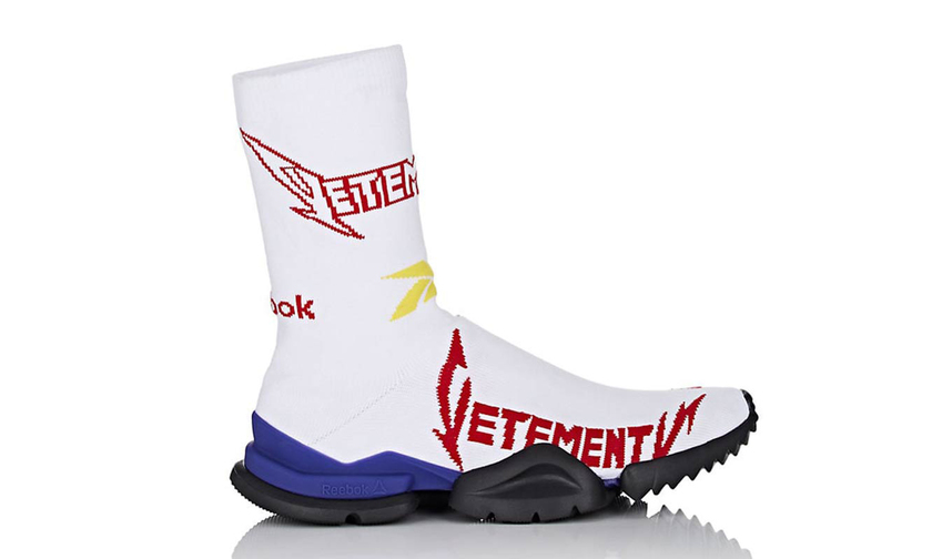 Reebok 与好友 VETEMENTS 最近便带来了双方新一季的 Sock Runner 联名,颇为醒目的 VETEMENTS 和 Reebok logo 配合 4 个配色编织在鞋面之上,比普通款更高的鞋帮也令包裹性升级。目前 VETEMENTS x Reebok Sock Runner 已经在 Barneys 开售,售价 880 美元,感兴趣的朋友不妨前往入手。
