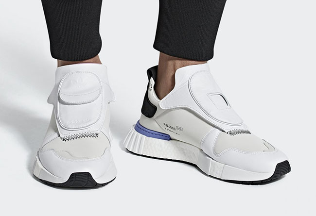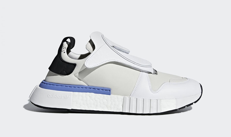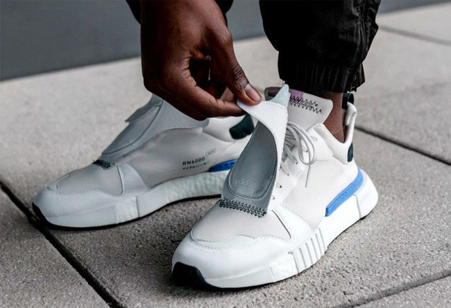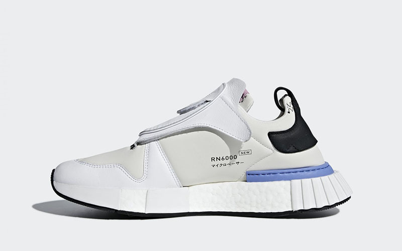 Futurepacer 设计上除了保留 Micropacer 搭载前卫计步器的夸张鞋舌外,还选用了灰白色的高级皮革制作鞋面,并搭配黑色后跟与蓝色中底细节作点缀,最后搭载 NMD 的经典设计 Boost 中底和橡胶外底而成。同时鞋身采用 3M 反光材质加持,双脚内侧标有 RN6000 及 “微处理器” 日文字体,致敬意味颇为浓厚。