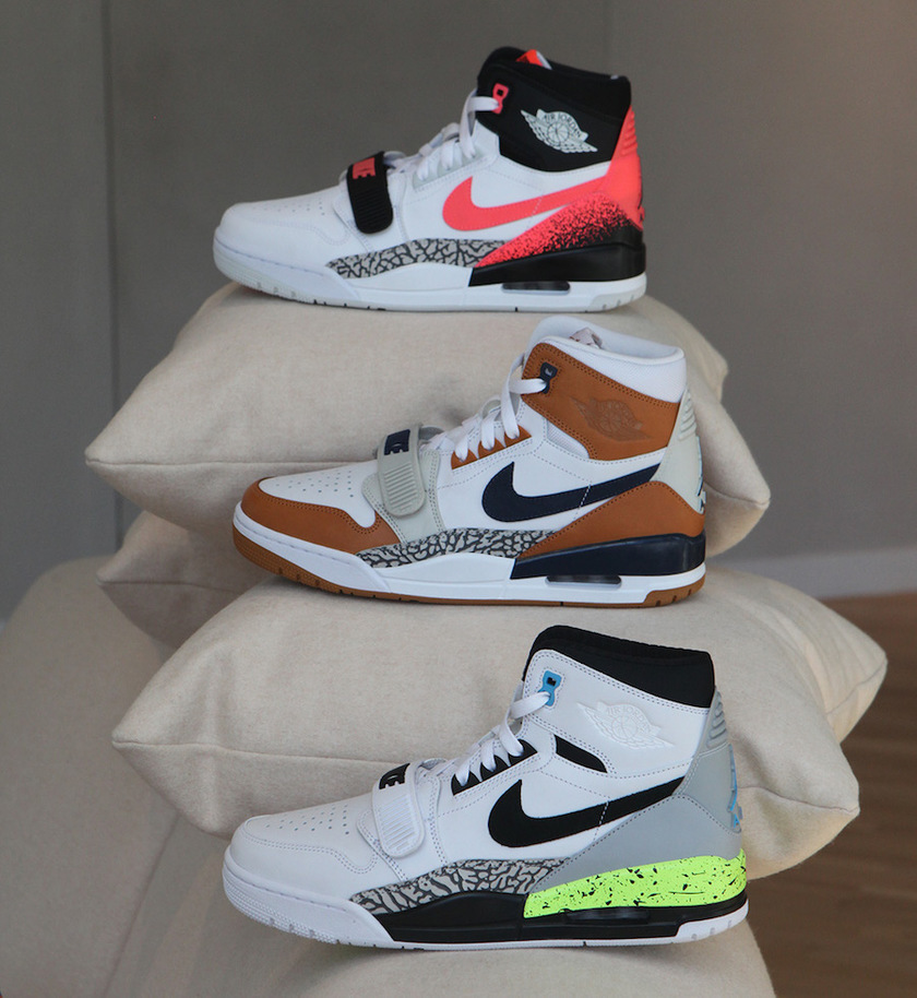 在上周末 “Storm Blue”、“Ghost Green” 两款首发配色释出之后,早先曝光的三款 Jordan Legacy 312 “Nike Pack” 也于近日传出发售讯息,将于8月正式发售!