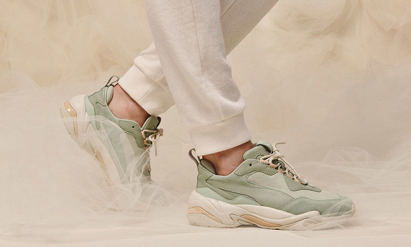 PUMA 最新 Thunder Desert 鞋款在本季早些时候就曝光了粉色和绿色两种配色,分别为 “Natural Vachetta” 和 “Smoke Green”。