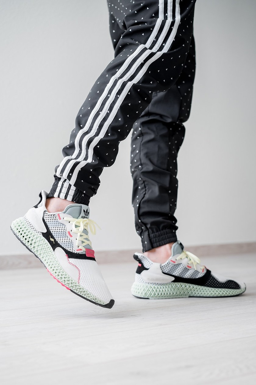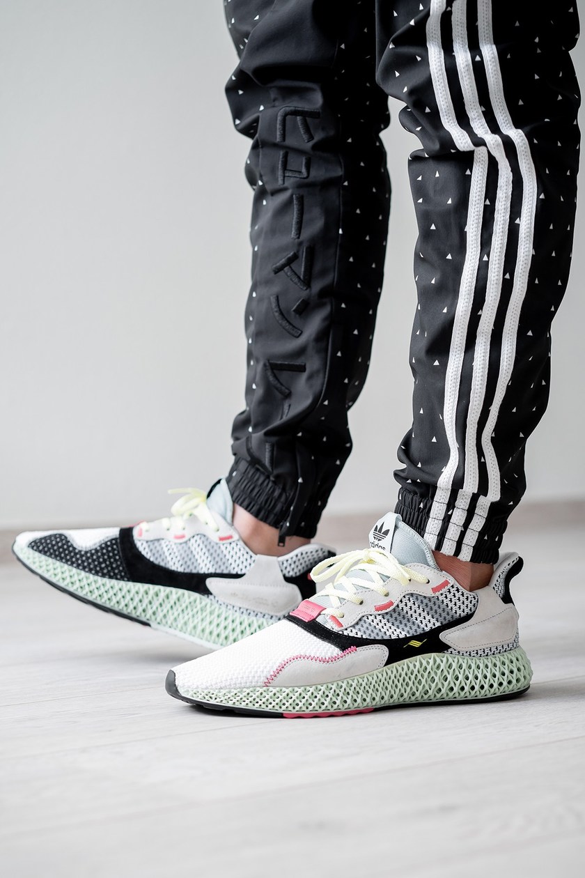 adidas 全新混血之作 ZX 4000 4D 率先亮相网络。从 Sneakerhead @randygalang 率先分享的实物与上脚图片中我们可以看到,adidas 这次以复古跑鞋 ZX 4000 作为鞋身原型,采用编织材质与麂皮结合打造,更保留了两侧的经典 Logo,并搭载上革新的绿色 FUTURECRAFT 4D 大底而成。据悉,这双 ZX 4000 4D 预计将在 11 月正式发布。