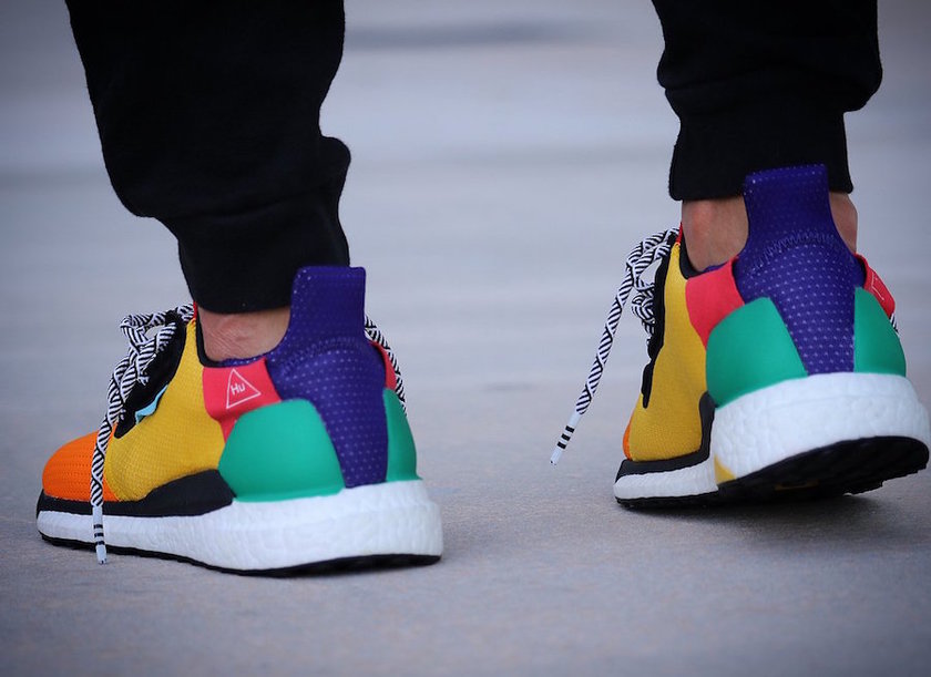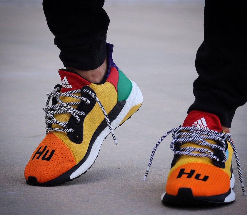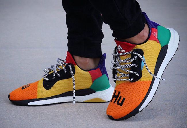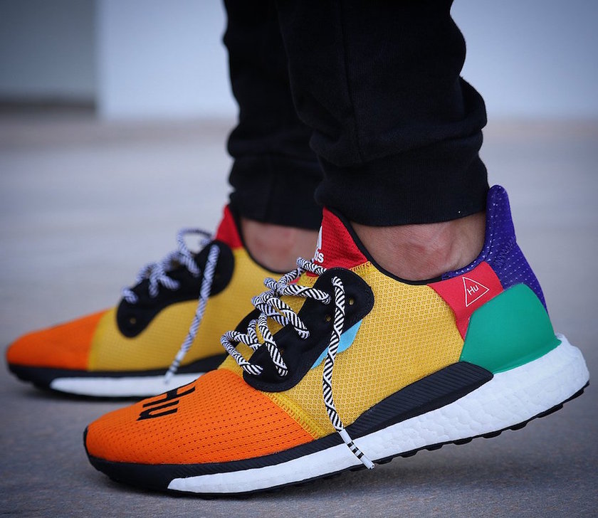 全新菲董 x adidas Solar Boost“HU” 早前已经曝光,此番带来更多实物上脚美图。这款全新的彩色联名版本,由菲董在 207 ComplexCon 首次上脚曝光,依旧延续了风骚彩色设计,鞋面由红、橙、黄、绿、蓝、紫等颜色拼接而成,白色的 Boost 中底有着跑车一般的腰线设计,极具线条感,可谓是一双名副其实的 “彩虹鞋”。鞋头依旧绣有标志性的 “Hu” 字体,搭配黑白花纹鞋带。