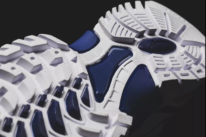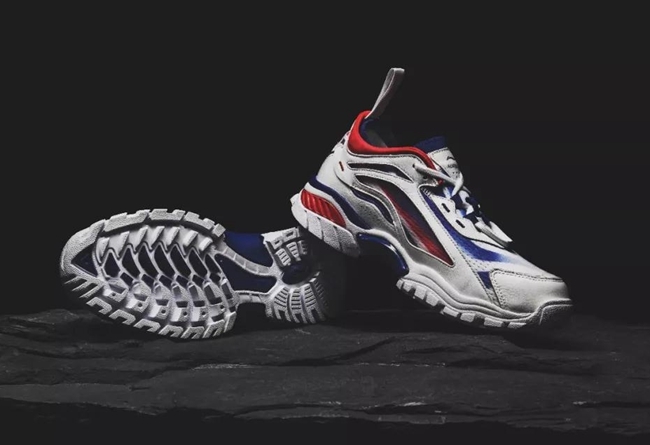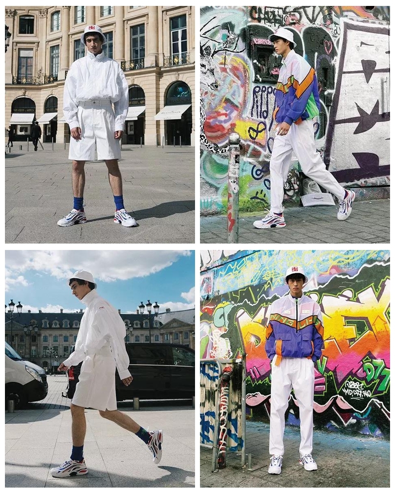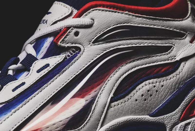 设计上采用了更加前卫的造型呈现,延续了红蓝渐变的鞋面线条的同时,以多层拼接鞋面和透明 Logo 设计增强层次感,更加宽厚的中底设计使鞋型更加丰满,时尚又复古。