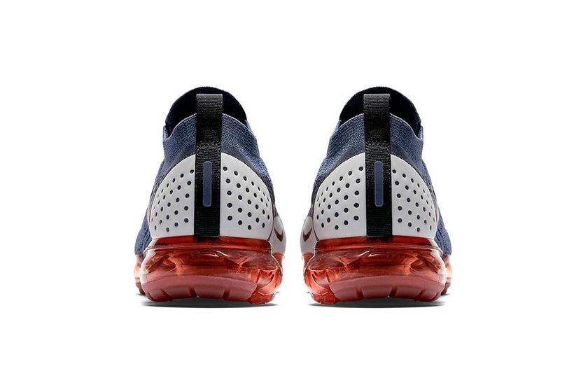 凭借 ACRONYM 联名系列而大受欢迎的 Nike Air VaporMax Moc 2,此番又迎来一款最新的“Gunsmoke”配色。其去除传统鞋带系统的袜套式鞋身,选用了深蓝色 Flyknit 制成,并通过黑色 Swoosh、鞋面上的 AIR 和 MAX 字样、后跟以白红二色不对称呈现的支架,以及与之呼应的枣红色 VaporMax 透明气垫大底丰富层次感。据悉该款配色将于 8 月 16 日在 Nike 指定零售商上架,定价为 $200 美元。