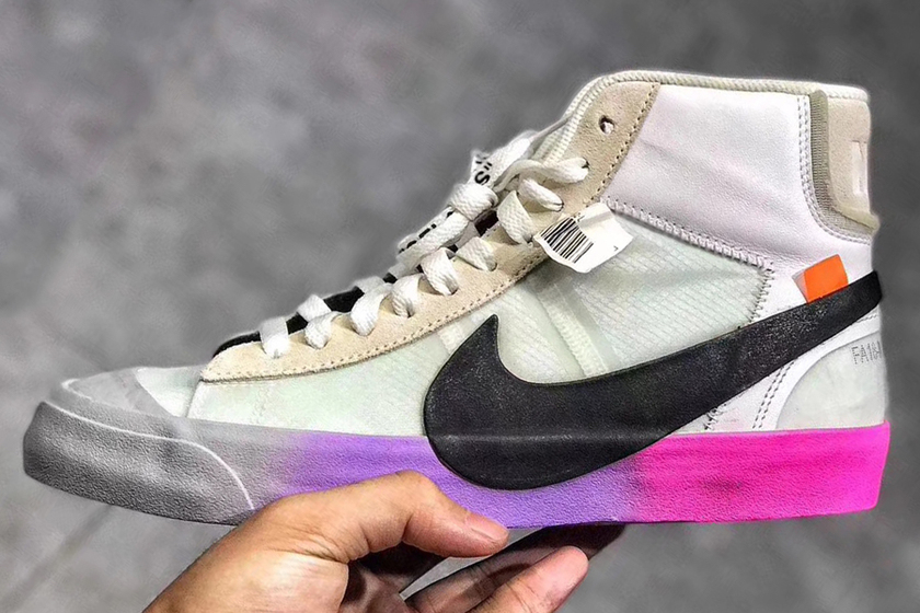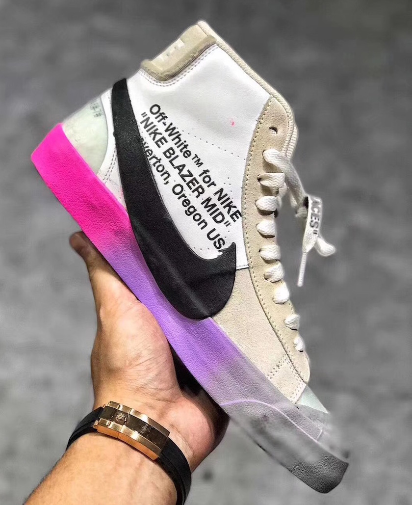 早前网络上曝光的一款彩虹配色 OFF-WHITE x Nike Blazer Mid 也是吸引了不少目光,虽然目前还不知道究竟是个人DIY还是官方出品,但不得不说这个设计还是非常诱人的。