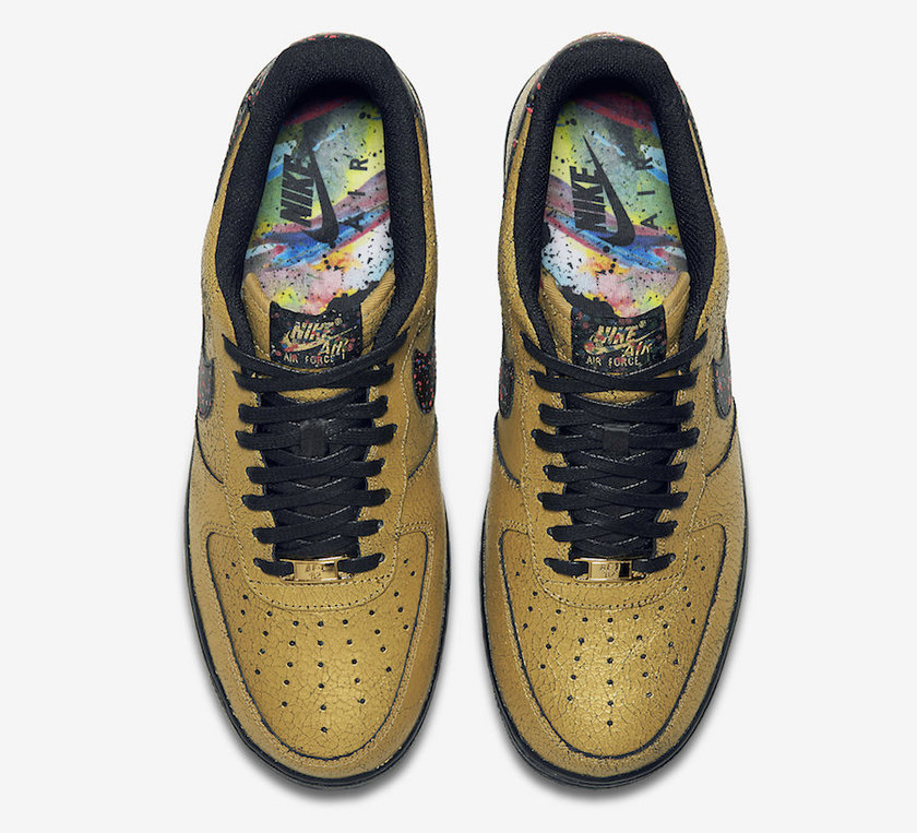 其中Air Force 1 Low 采用金色的皮革制作鞋身,上面带有裂纹的细节,打造出极具质感的破碎效果。