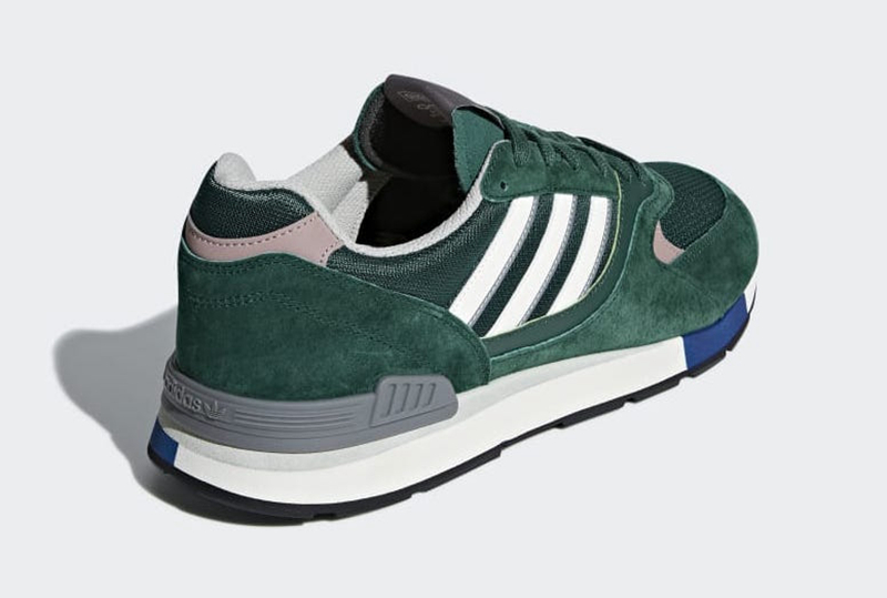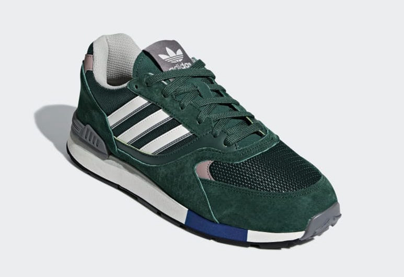 adidas Quesence 这款经典鞋型再度“重出江湖”,此番带来一款清爽的墨绿色设计,鞋面由质感极佳的麂皮材质搭配复古风格的尼龙网布打造,中底为复古鞋中常见的多密度拼接设计,后跟还有 TPU 稳定片,带来复古造型的同时保证穿着感受。