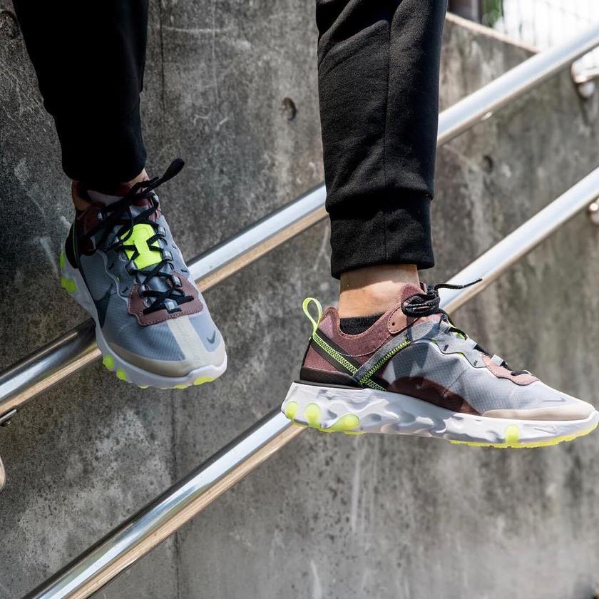 自诞生起便备受关注的 Nike React Element 87,早前曝光了「Dark Grey」和「Desert Sand」两双全新配色,而此番日本知名鞋店 atmos 则透露了这两双鞋的发售详情。两双鞋在设计上继续采用半透明弹力编织材质制作鞋身,并分别以深灰和浅棕作为主调,同时在多处细节注入萤光色元素点缀,最后搭载创新 React 大底和软木鞋垫呈现。据悉这两双 Nike React Element 87 将在 8 月 14 日正式发售,每双定价为 ¥16000 日元。