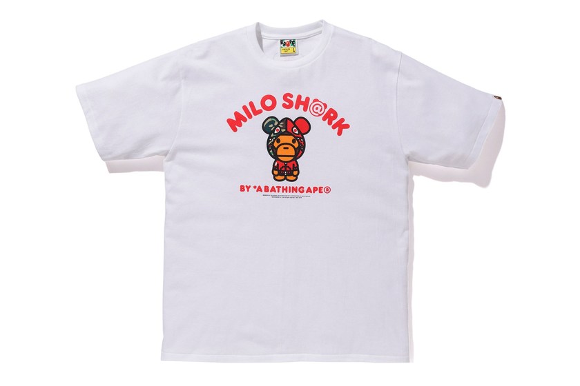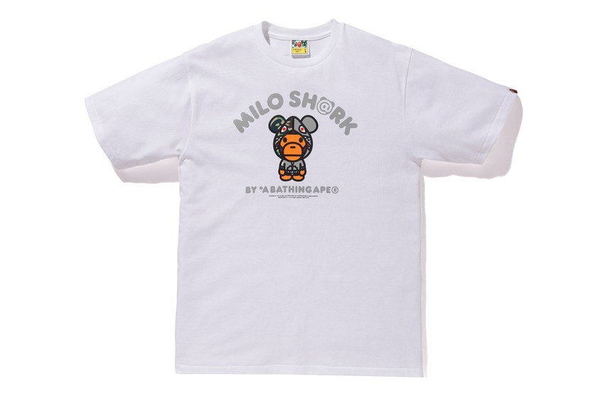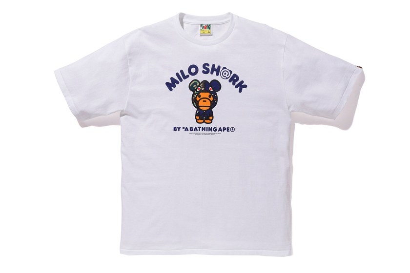 A BATHING APE 与 Medicom Toy 再度携手,带来全新 BE@RBRICK 联名 T-Shirt 系列。这次联名 T-Shirt 将带来两款图案,一款是以猿人头加上 BE@RBRICK 耳朵,而 A BATHING APE 字样中 BATHING 的「A」字,则采用了 BE@RBRICK 的经典「@」字图案代替。Baby Milo 版本则是 Milo 穿上了 CAMO SHARK 外套,T-Shirt 上的 MILO SHARK 中的「A」字,则同样采用了 BE@RBRICK 的经典「@」字图案代替。所有 T-Shirt 将会在 8 月 11 日起登陆 BAPE 各大指定门店。