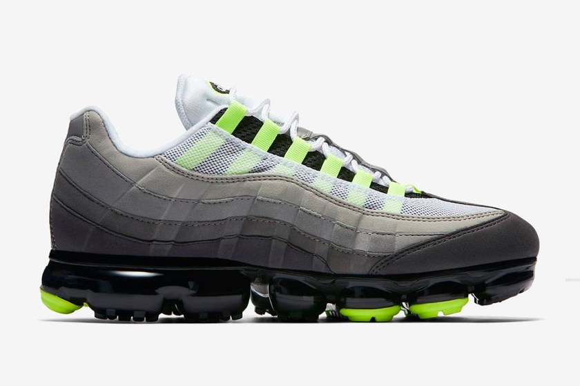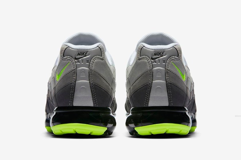 混血鞋款 Air VaporMax 95 此番终于释出官图及发售讯息。Air VaporMax 95 首波配色将以 Air Max 95 经典的“Neon”配色作为蓝本,在保留其经典灰色和应该绿色鞋面搭配的同时,搭载 Nike 近年超人气的 Air VaporMax 大底而成,鞋款将于 8 月 16 日上架,定价为 $190 美元,有兴趣的朋友请万勿错过。
