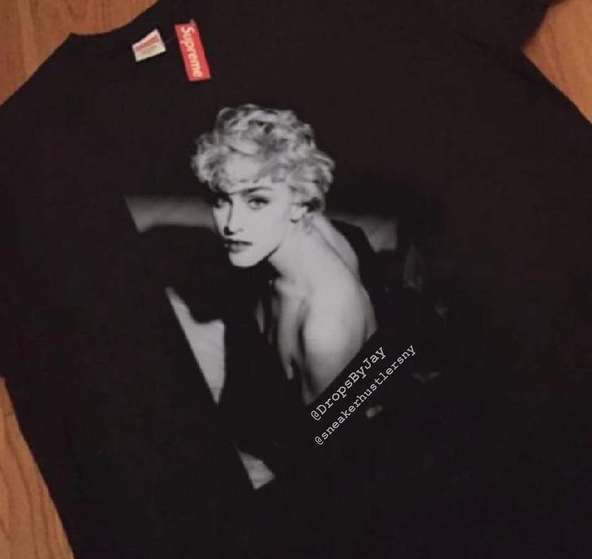 越接近越好奇,这就是 Supreme 粉丝近日来的心情写照。部分款式已经率先在网路曝光,像是 Bogo 卫衣、印花图案、Mophie 充电宝等等。今天情报账号 @dropsbyjay 再度透露 2018 秋冬系列首周发售的重磅单品——Supreme x 麦当娜主题 T恤。从不算清晰的谍照来看,应该是采用了 Photo Tee 的设计,将年轻时期麦当娜的照片印在 T恤胸前。Photo Tee 在 Supreme 里的地位无需多言,想必发售之时又是一番腥风血雨。