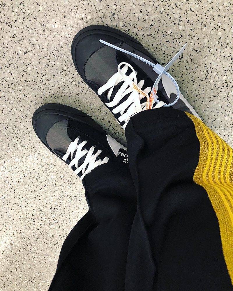 近日,OFF-WHITE 主理人 Virgil Abloh 近日亲自上脚了全新的 OFF-WHITE x Nike Blazer Studio Mid 黑白配色,标志性的解构风设计搭配超大 Swoosh Logo,鞋面由格纹织物和多种皮革拼接而成。