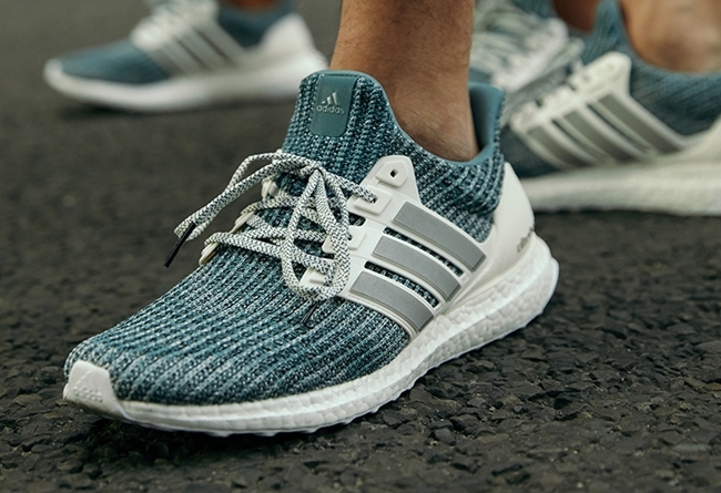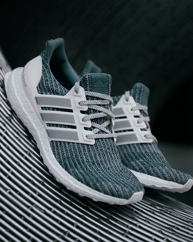 海洋联名 Ultra Boost 全新配色如今被命名为 Ultra Boost DNA,依旧以清新的湖水绿 Primeknit 编制材质打造,支撑部分为白色 TPU 打造,三道杠 Logo 为银色涂装,带来清新的视觉效果。