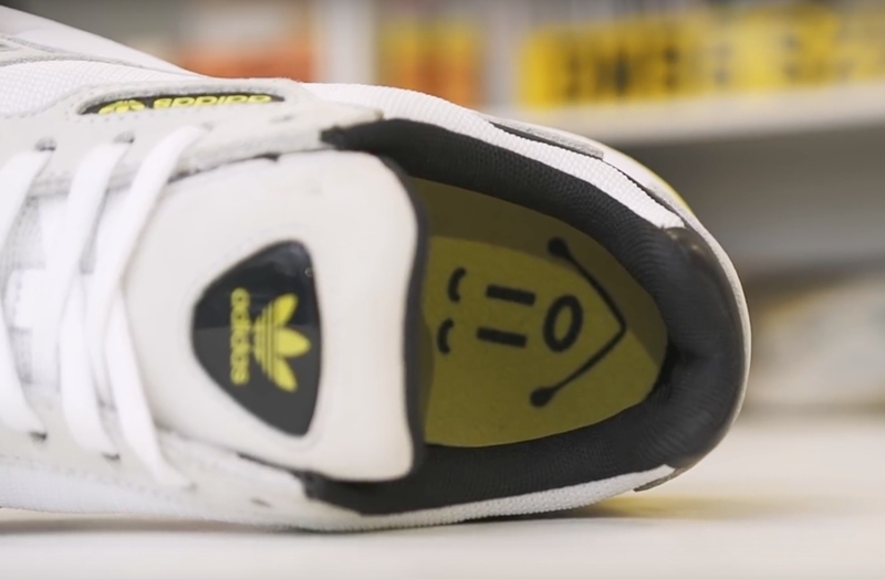同时 Falcon 则以灰白色作为主色调并点缀黑黄。从谍照图来看,Falcon 鞋垫印有特殊的 Acid House 风格变形笑脸图案。