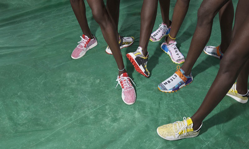 连系全球人民、宣扬大爱理念,adidas Originals 与 Pharrell Williams 在 2018 年秋冬季再次延续 “HU” 系列,来展现 “PLAY FOR THE HUMAN RACE” 主题的多元化世界。此次系列包括两款鞋履与一件服装单品,采用自信且大胆的湖蓝色、猩红色、亮黄色、绿色以及紫色等色彩来完成设计。