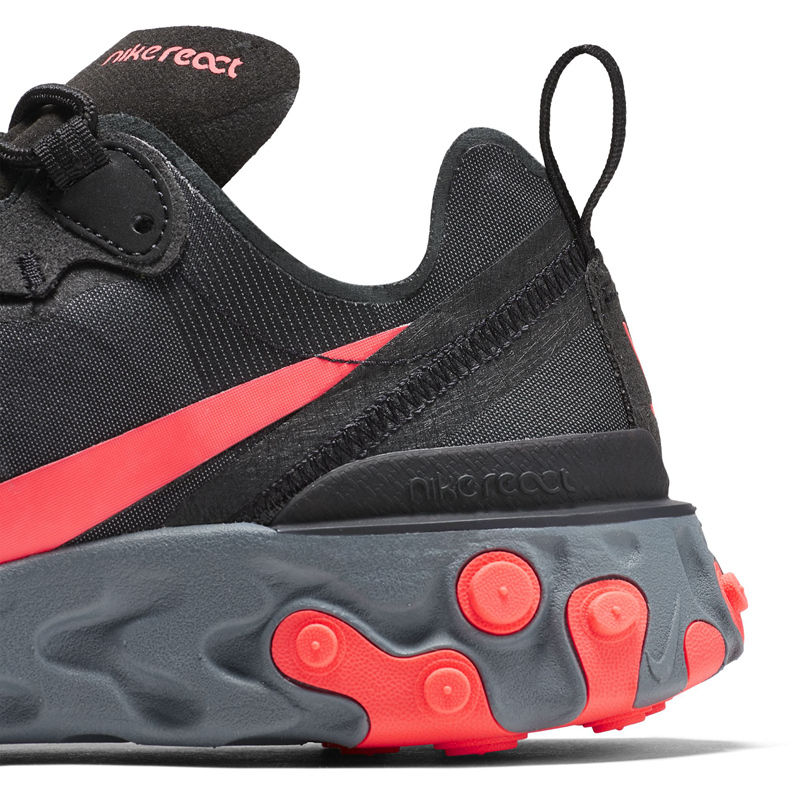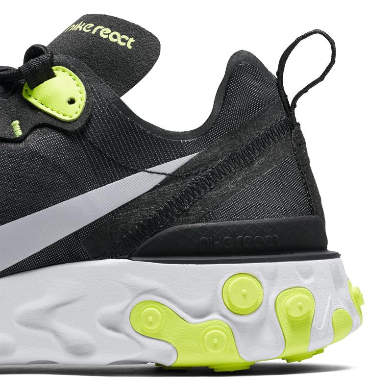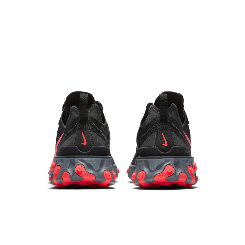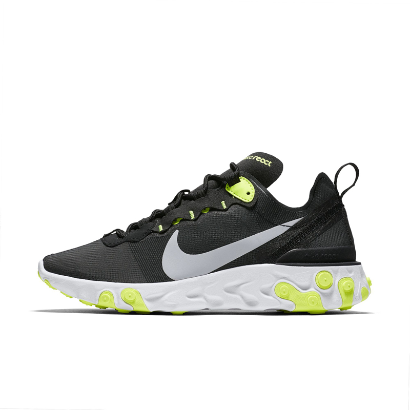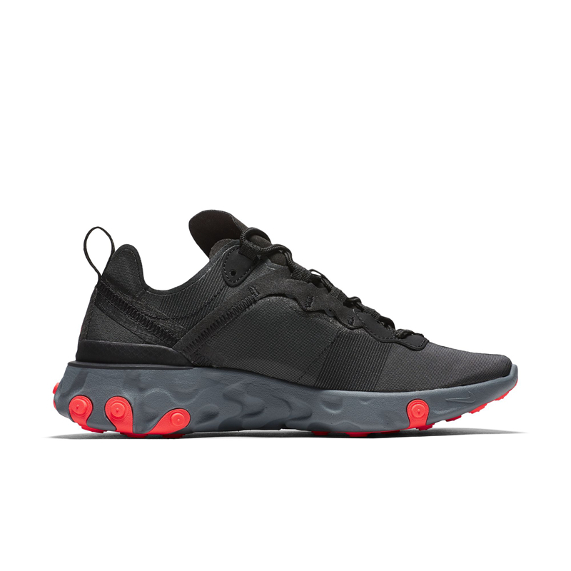 鞋型与 React Element 87 几乎完全相同,仅仅是鞋面材料变成了不透明的网布。中底依旧是带有镂空的 React 材料,带来适合日常穿着的软弹脚感。依然是一款素质颇高的潮流跑鞋,目前有黑红和黑色搭配荧光黄两款配色释出,感兴趣的朋友不妨期待Nike React Element 55的发售!