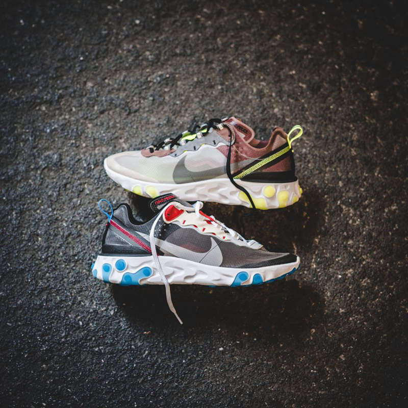 作为今年的一匹黑马,Nike React Element 87 此番又带来两款秋季全新配色,此番带来上脚近赏。两款全新配色加入亮眼的彩色点缀,除了黑白的底色,还分别以蓝、红和棕色、荧光绿装扮。鞋面依旧延续解构风格设计和半透明材质,搭配彩色袜子能够展现出不同的色彩。