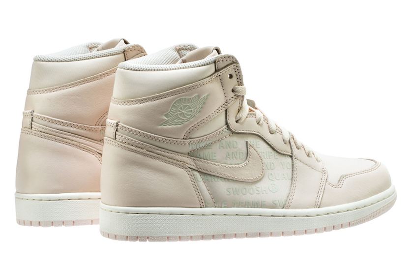 这款 Air Jordan 1 “Guava Ice” 鞋面以帆白为基调,鞋面由皮革以及帆布两种材质打造,呈现出与普通 AJ1 不同的质感。两侧硕大的 “NIKE”、“AIR” 字样与弹幕一般的字幕细节呈现出鸳鸯设计,清爽却不失细节。