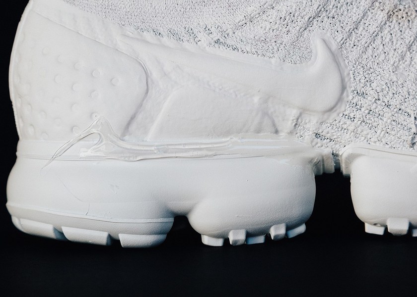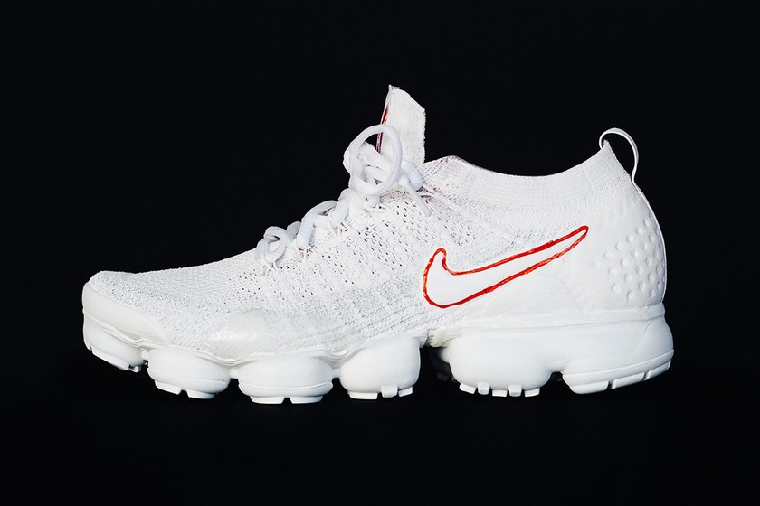 来自美国盐湖城的线上店铺 HATHENBRUCK 此番为Nike Air VaporMax 2 Flyknit特别打造了全新的“Dripmax 2s”定制设计。以白漆“浸渍”鞋身和大底设计,油漆部分会随着用户的日常穿着而逐渐脱落,从而形成一种独一无二的型态,而侧身依旧是以红色线条勾勒的 Swoosh 图案增加亮点。