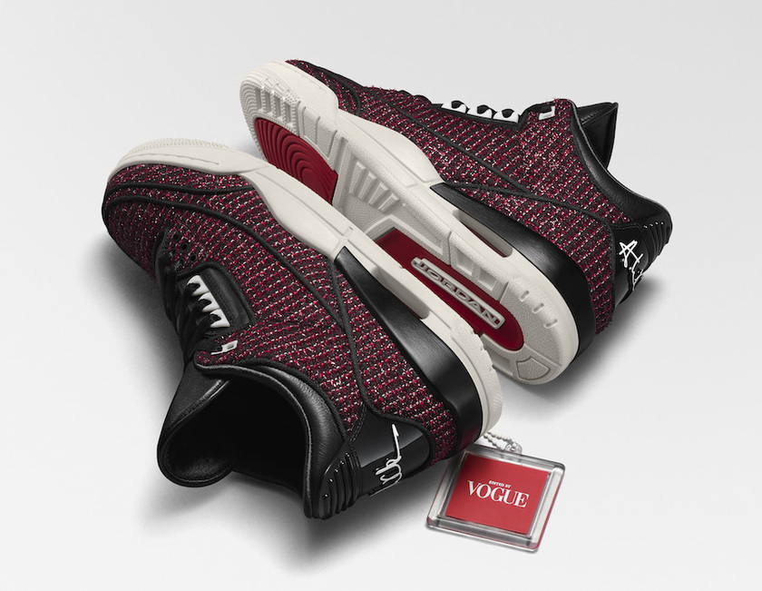 这两款 Vogue x Air Jordan 3 AWOK 同样以素有“时尚女魔头”之称的美国版 Vogue 主编 Anna Wintour 为灵感,以“时尚女魔头”的经典造型 —— 墨镜以及针织套装将主题呈现。类似粗花呢材质的鞋面,优质皮革的鞋舌以及内衬,“EDITED BY VOGUE” 字样的吊牌,以及独有的手写 AWOK 签名后跟,都预示着这款联名的不俗。