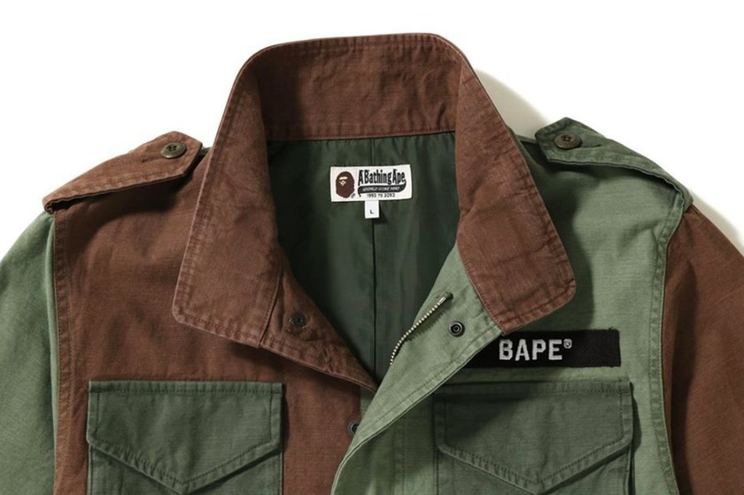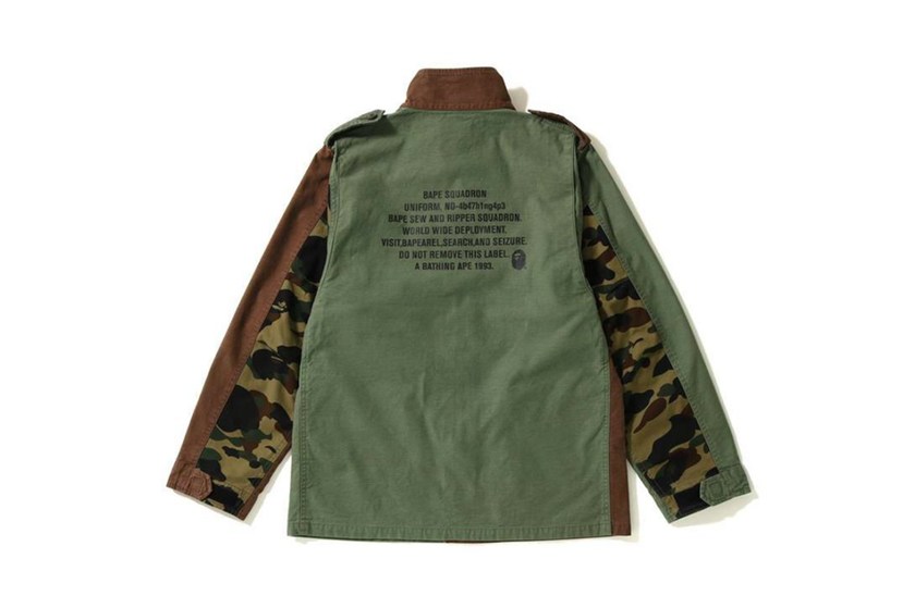 A BATHING APE 对军事元素也很热衷,此番品牌就以 M-65 军事外套作为基调,推出拼色水洗 M-65 Jacket。采用不同的军绿色及棕色配搭而成,而袖底部分则用上经典猿颜迷彩,配合重度的洗水加工,军事气息十分浓郁。据悉,这款 A BATHING APE Washed M-65 Jacket 将于 8 月 25 日上架,有兴趣的朋友可到 bape.com 官方网店购买得到。