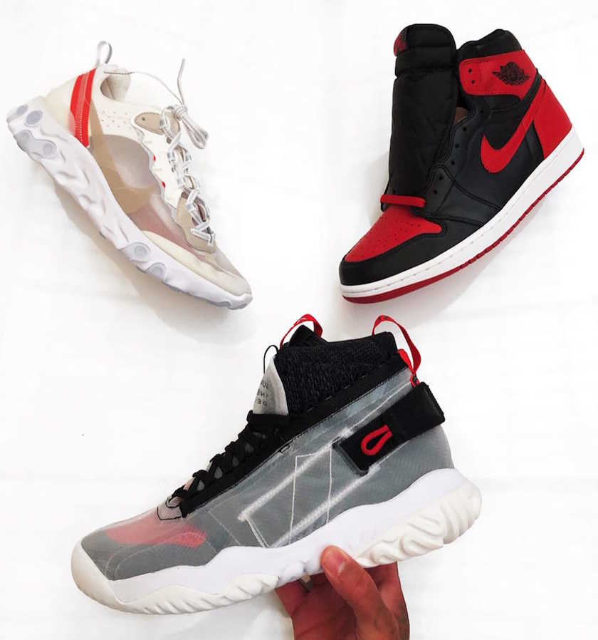 这款全新 React 系列是以今年夏季市场的黑马 Nike React Element 87 与 Air Jordan 1 Flyknit 相结合而成。以解构主义设计,将 AJ1 鞋身、蝉翼鞋面、Flyknit 编制技术、React 科技等元素融于一身,打造出独特的 “Air Jordan 1 Flyknit React”。