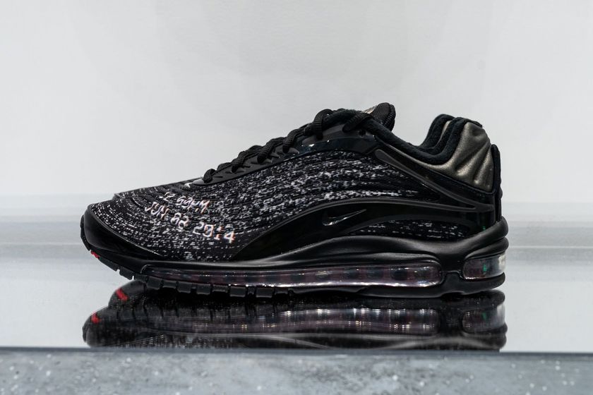 早前已为大家带来由英国说唱歌手 Skepta 与 Nike 最新合作的 Air Max Deluxe 谍照,此番则迎来更多清晰细节图。设计上根据 Skepta 的个人喜好与风格,选用黑色 Air Max Deluxe 作为蓝本,将 VHS 复古感满载的“花屏”图案布满鞋面。