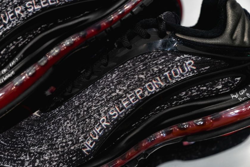 同时在鞋身内侧写有“NEVER SLEEP ON TOUR”的字样体现 Rapper 身份。