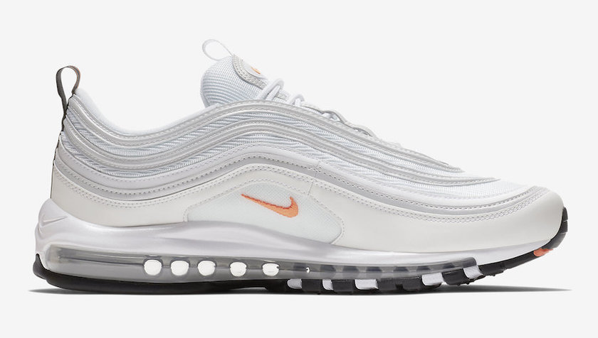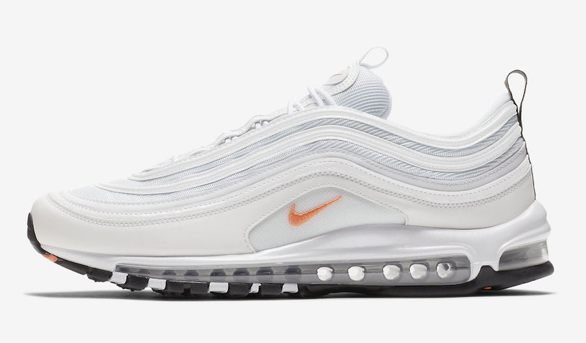 Nike 旗下经典鞋款 Air Max 97 推出全新配色“White Cone” ,整体使用白色为主的配色打造。这双 Nike Air Max 97 的特点是鞋款两侧使用了橙色 Mini Swoosh Logo 进行点缀。搭配黑色外底和后跟处黑、橙双色点缀。将于近期发售,货号为BQ4567-100。