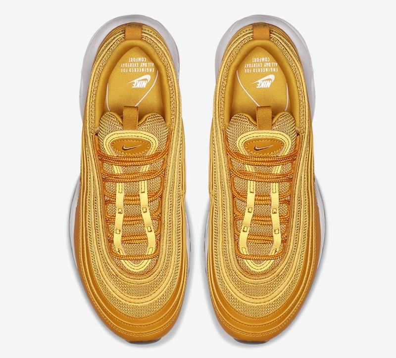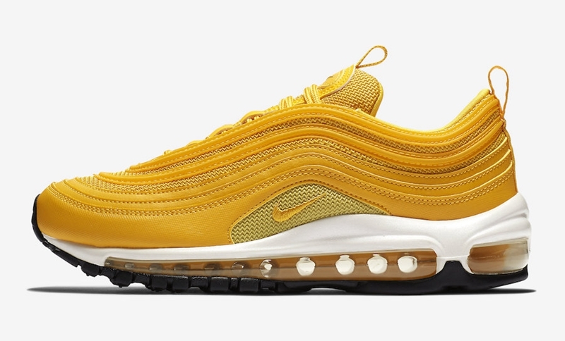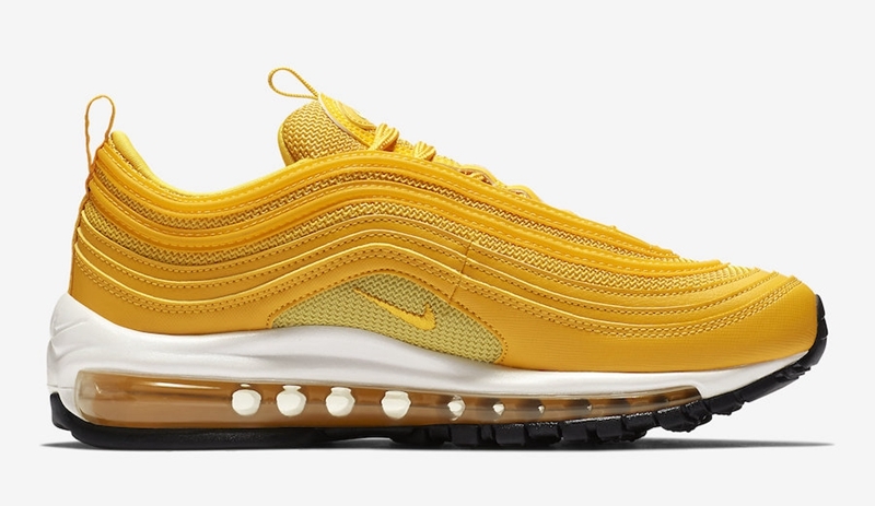 近日为迎合即将到来的秋天,Nike 发布了一双全新金黄色的 Air Max 97 “Mustard” !鞋款以纯黄色示人,就连标志性的 Max 气垫里的气柱也以黄色呈现,搭载 3M 反光元素,最后搭配纯白色中底与黑色外底。整体给人感觉极为亮眼。