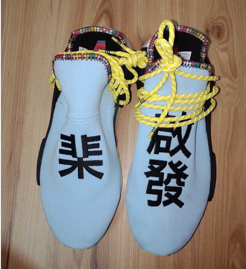 今日,网上再度曝光了一款全新的 PHARRELL WILLIAMS x Hu NMD 设计。这次左右脚的鞋身上分别绣有 “棐” 和 “启发”的中文字样,同样是以繁体形式呈现。另外总共包含了以蓝色为主色调的两种不同配色,不知道是不是棐这个字启发了菲董什么灵感。目前还并未释出具体的发售信息,感兴趣的朋友不妨关注我们的后续报道吧。