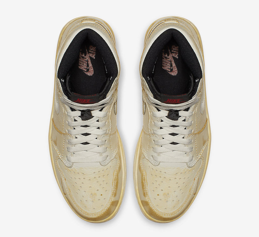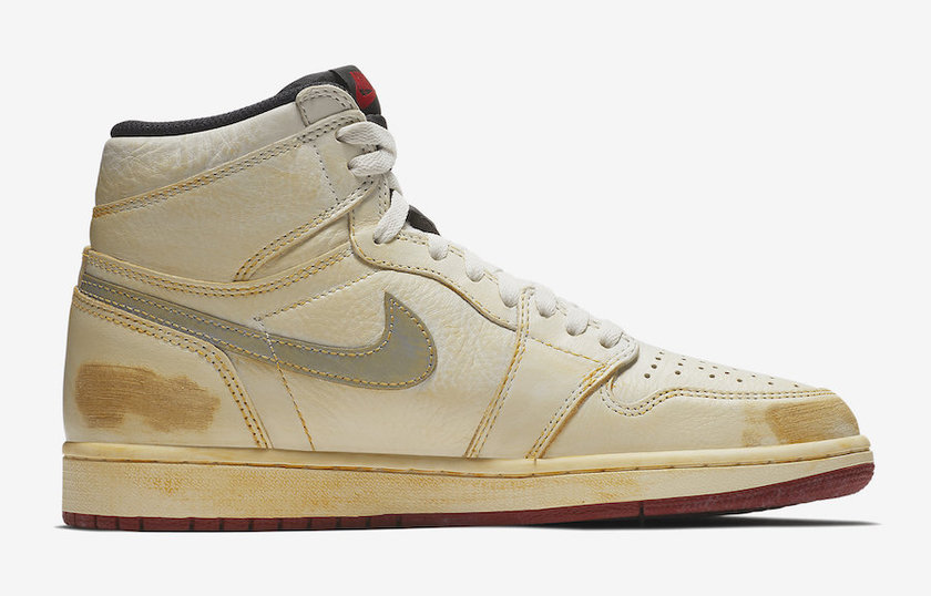 这款自带氧化设计的 Air Jordan 1 自从曝光之后就因丰富的细节而备受关注。帆白的皮革带有类似擦痕的细节,纯白的 Nike Swoosh 则辅有 3M 反光效果。Mini Nike Swoosh 刺绣点缀于鞋头,而鞋帮处的飞翼 Logo 呈现出拆解式的做旧设计,最后以具有年代感效果的暗红色大底收尾,以致敬元年的白红配色。