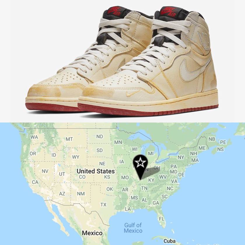 此外,知名 Ins 爆料账号 @zSneakerHeadz 还释出了其在美国地区的发售店铺图。醒目的孤点证实着这款自带氧化的联名 Air Jordan 1 并没有那么好入手。