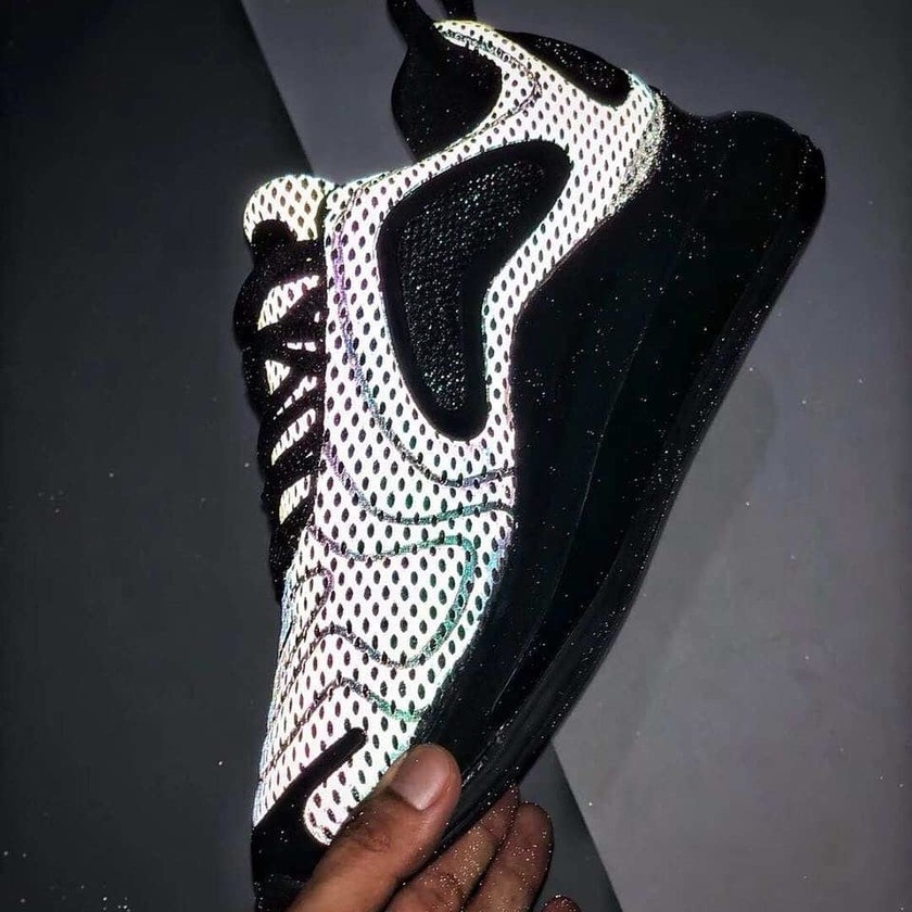 同时除了这款黑色,还有银子弹和全 3M 反光配色,在配色上大作文章使得这款鞋看上去科幻感十和未来感十足。