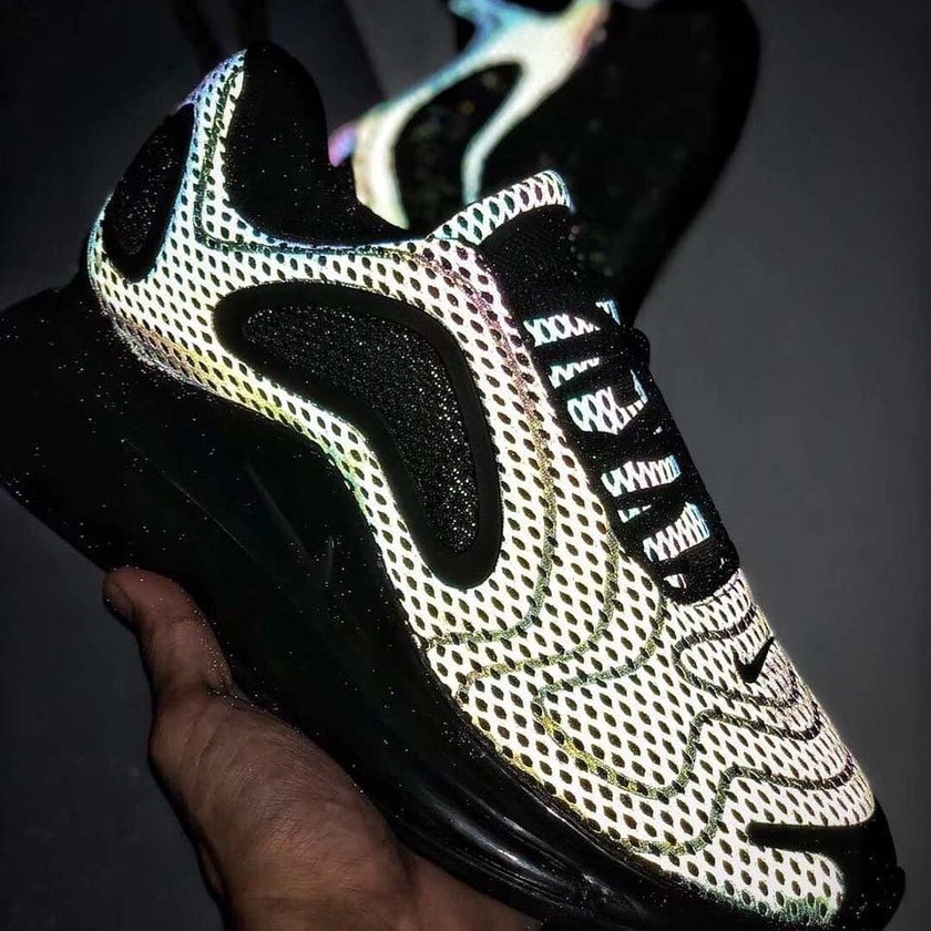 这款 Nike Air Max 720 搭载全掌 Air Max 气垫,鞋面设计有Air max 97 和 Air max 98相结合的感觉,而鞋底的大气垫设计则依旧是亮点。