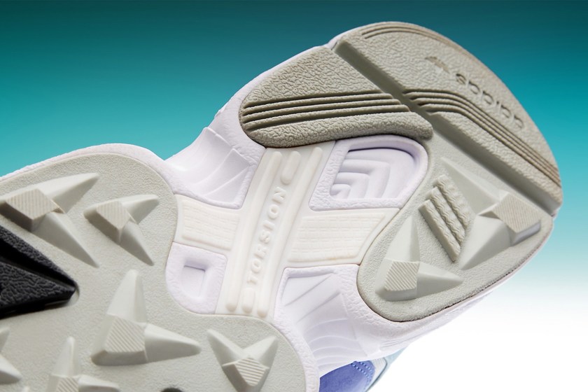 在继昨天看过官图之后,adidas Originals 与英国时尚名所 END. 的联名 Yung-1 企划此番再度释出上脚图。以“Atmosphere”为名,END. 在这次合作中设想出一次穿越平流层探索未知的旅程,再返回地球表面在 adidas 历史中留下一个新的足印。Yung-1 的配色灵感取自大气层边缘,将深浅两种蓝色调与取自云层的银、灰结合呈现,而鞋身则延续了牛巴革、麂皮和网眼的结构,并搭载上 Torsion System 和 EVA 中底而成。