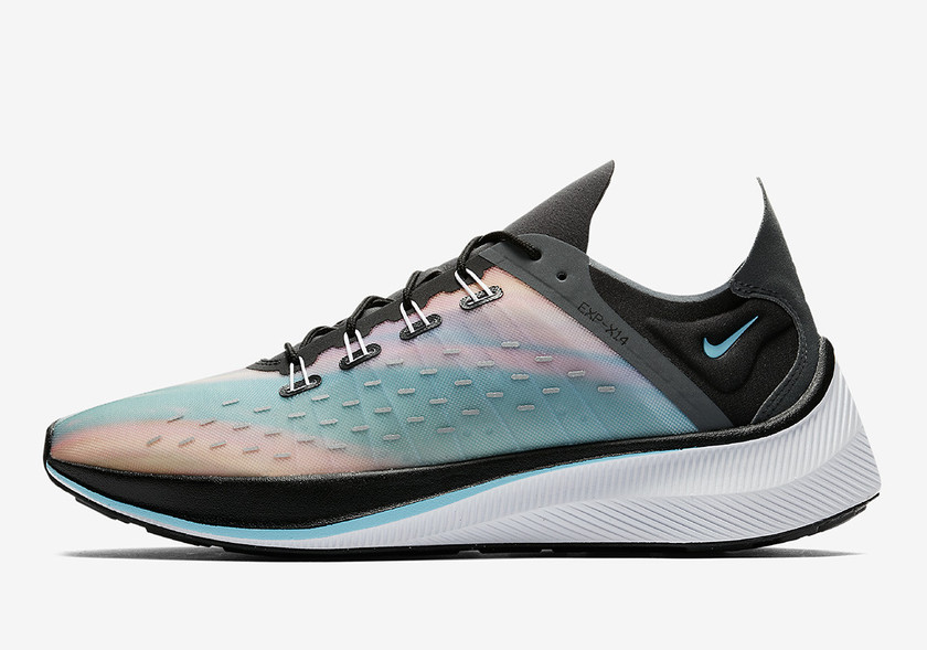 Nike 近期所打造的新鞋款 Nike EXP-X14 由于使用了大热的半透明纱织材质从而受到很好的市场反馈。如今品牌再次为其注入了全新配色。此番的这双 Nike EXP-X14 使用了幻彩配色,蓝绿粉多色交织在半透明纱织材质下显得若隐若现。加上纤细的鞋型和突出的后跟让整双鞋显得十分犀利。据悉此款的货号为 BQ6972-001 ,国内官网及线下渠道已上架。
