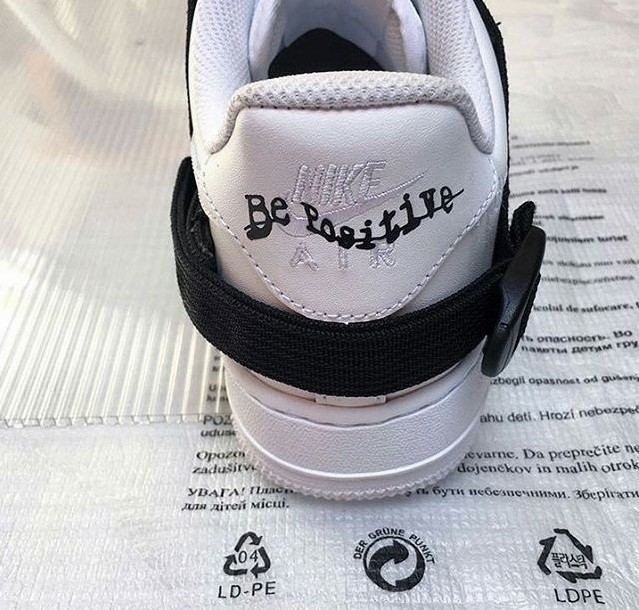 近日,网上曝光了 Nike 全新 Air Force 1 “Be Positive” 的sample谍照,以经典的 AF1 为原型,使用了当下非常流行的战术扣设计,在鞋面添加了两条搭扣的设计,使得鞋款的穿脱更为轻松,同时在后跟处印有 “Be Positve” 的字样,鞋面两侧的标签则表明了鞋款的身份。