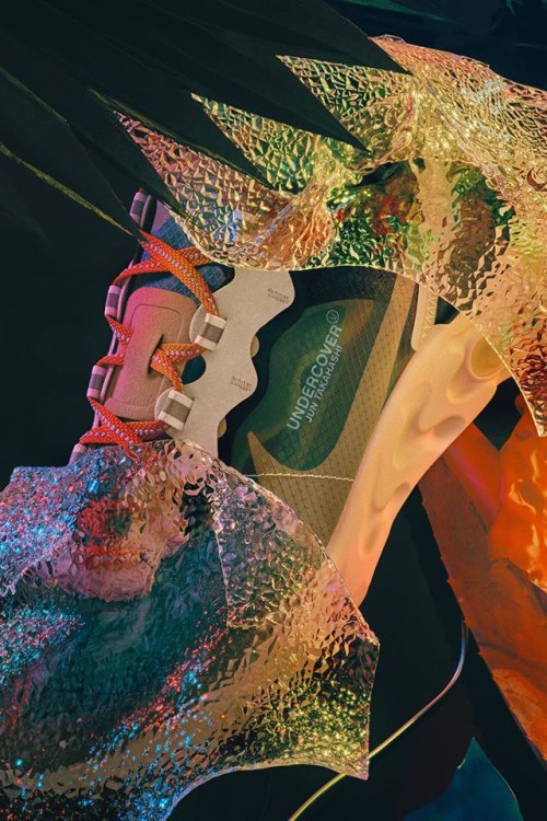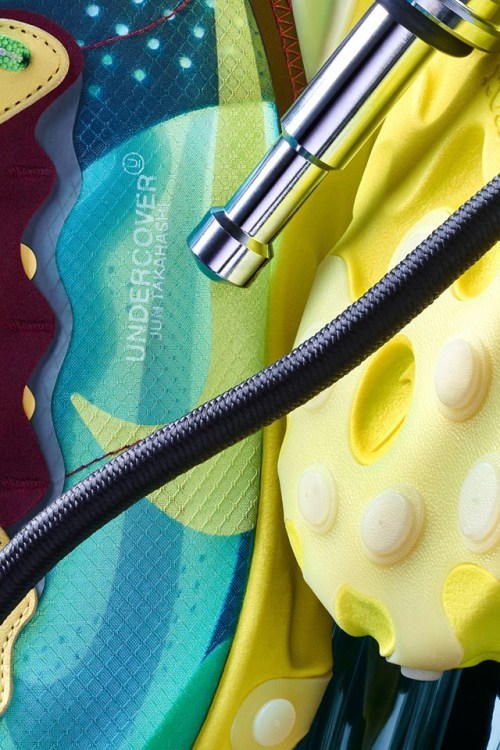 保留鞋身半透明材质结构的同时,在鞋面添加不同细节如麂皮、皮革及 3M 物料,同时以不同颜色配搭,呈现 UNDERCOVER 的独特风格,当然还有两行写着“UNDERCOVER Jun Takahashi”的字样去突出整个联名。