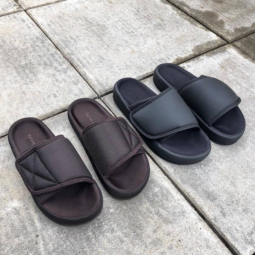 同时近日 Yeezy 系列再次曝出新款拖鞋,除了此前已经发售过的一双深棕色之外,还有一双设计更为简约的纯黑色出现,两双都是 Yeezy Season 7 的全新单品!