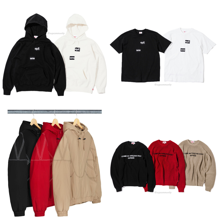 同时下面带来Supreme 2018 秋冬第 4 周发售单品一览,伴随 COMME des GARÇONS SHIRT 联名系列的到来,也迎来了本季首个抢购热潮,其中 Bogo 卫衣、T恤的市场价会呈现怎样的数字可能就是比较值得关注的了,在此提前祝大家好运吧。