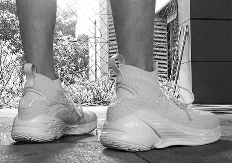 这款全新的 ANTA KT4 采用高帮套袜设计,后跟辅以开窗式镂空点缀,加上近乎包裹整个中底的反光支撑板,造型前卫时尚,但不知实战性能如何。