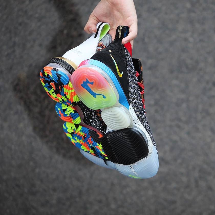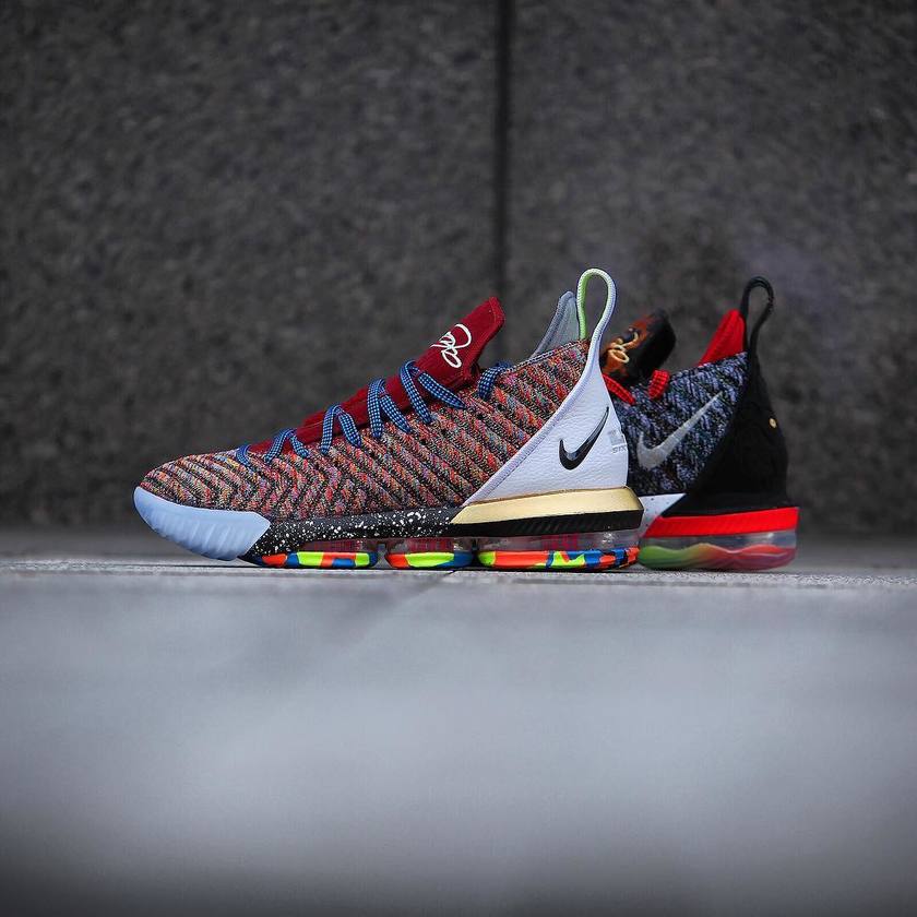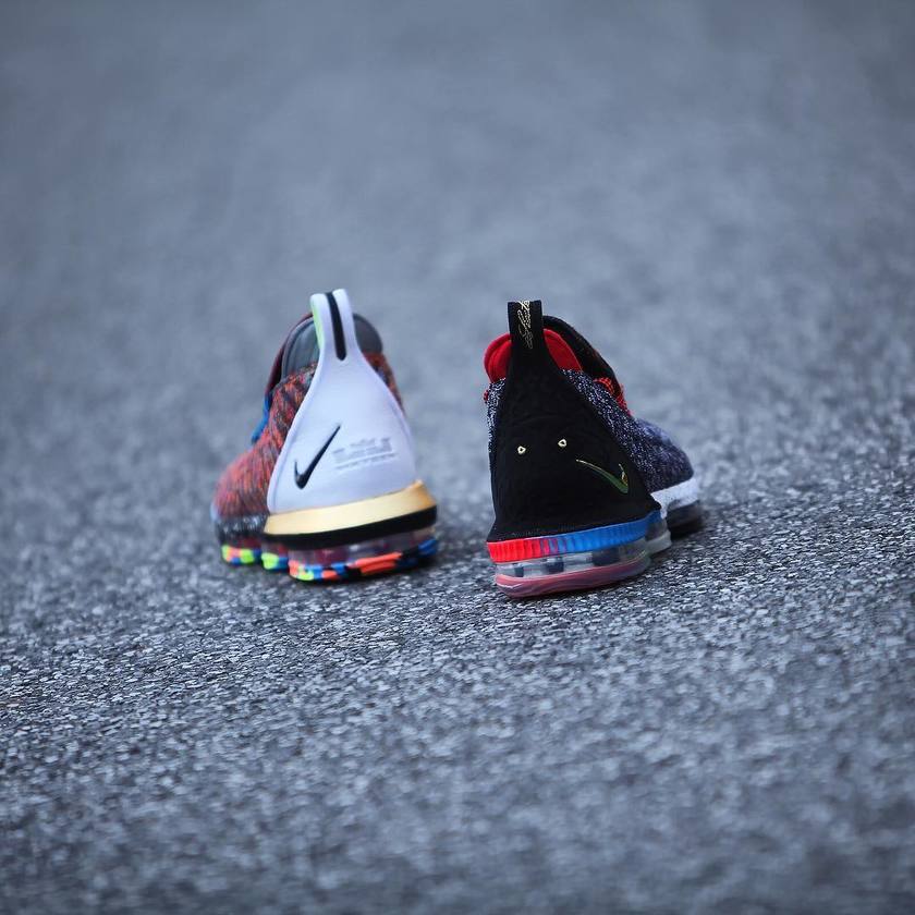 在前几日传出纽约地区限定发售的传闻之后,这款类似 What the 配色的 Nike LeBron 16 LMTD “Starting 5” 在近日再释动态。中国球鞋店铺 XH55 主理人、球鞋摄影师 @gc911 在其个人 ins 上释出了这款鸳鸯配色的实物美图,预示其即将登陆中国地区发售!