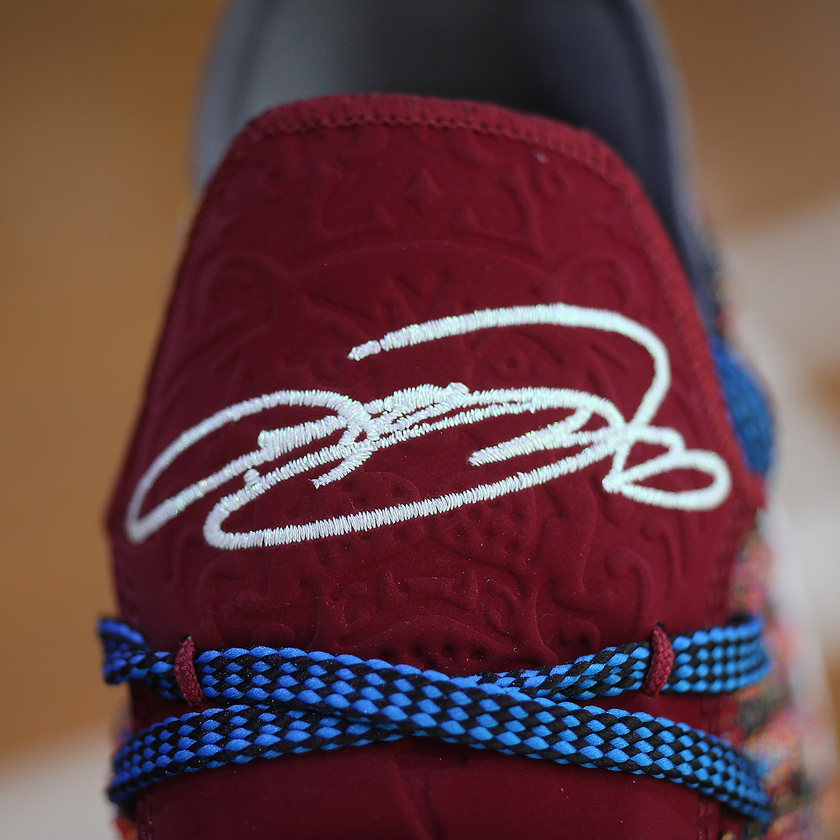 这款 Nike LeBron 16 LMTD “Starting 5” 以詹皇能胜任球场上的任意位置为灵感,其鞋面元素选用尚未释出的 5 款 LeBron 16。无论是多彩的编织鞋面,还是全新加入的鞋舌,亦或者是后跟、鞋垫、中底、大底,均以鸳鸯设计打造而成,与 “What the” 系列有异曲同工之妙。