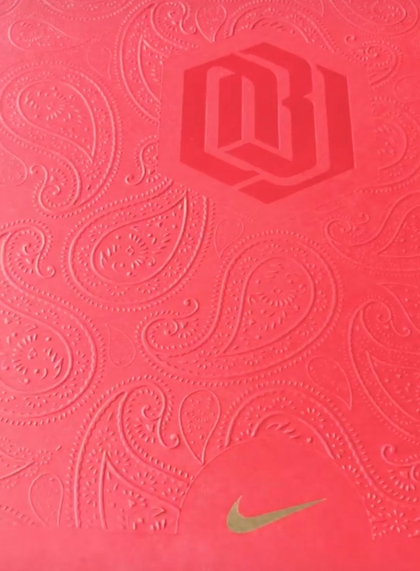 此番网上曝光出了这双全新的联名款球鞋,从包装到鞋子全部都为红色,鞋面采用多种面料拼接构成,比如麂皮、马毛、网格等等,拼接处以 x 形缝线处理,细节亮眼;内衬、Swoosh 以及鞋盒都使用 OBJ 最爱的腰果花纹;鞋盒上更是有 OBJ 的最新 Logo,野心满满。不过目前这双鞋仅亲友限定 100 双,想要入手还是非常有难度的,期待着未来会发售市售版本。