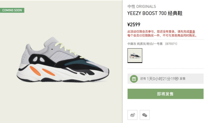 YEEZY BOOST 700 终于将迎来补货了,目前官网已经开放链接(点此前往),明天上午 10:00 准时发售,记得订好闹钟。